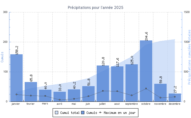 | Total | -8.3 °C | 6.1 °C | 32.9 °C | 14.2 °C | 9.6 °C | 1.9 km/h | 46.7 km/h | ESE |